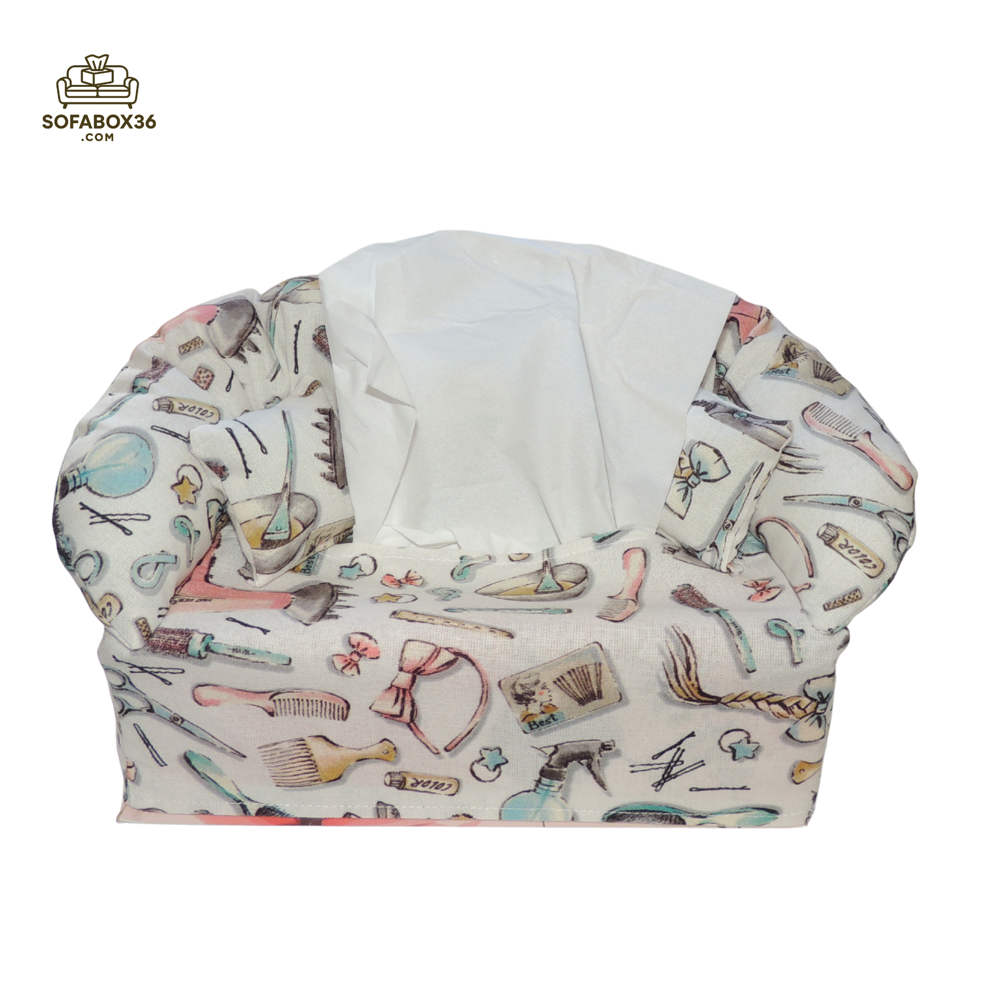 Funda de caja de pañuelos con forma de sofá. Peluquería.